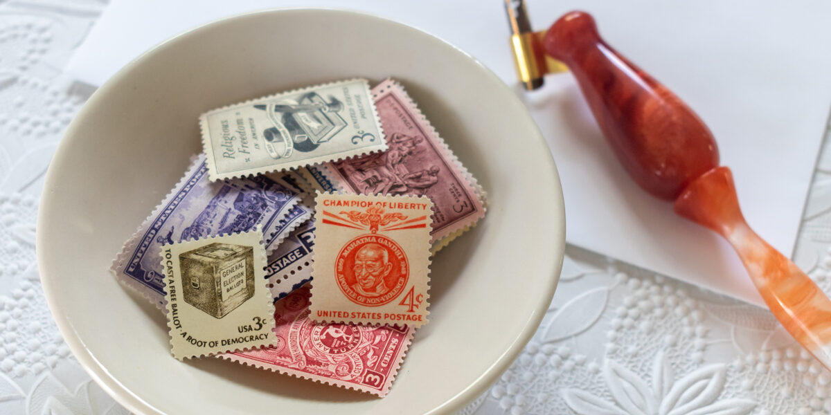 Most school children in the United States know about Benjamin Franklin being appointed the first Post Master General of the United States in 1775. But, there is a great deal more to the history of the USPS that includes opening of new post offices with the establishing of new towns and the fact that postage used to be due on delivery rather than prepaid! This changed with the introduction of postage stamps in 1847 in New York City and the next day in Boston. These were national issue postage stamps, although regional stamps had existed prior to the Congress passing an act that led to the engraving of the first postage stamps. The intricate designs of old postage stamps are the result of engravers creating the intricate designs by hand! This continued until relatively recently when the printing was privatized and consists mostly of offset lithography. For more on the history of postage stamps, you can take a look at this article, but we’ll continue on to talk about how to use vintage postage.